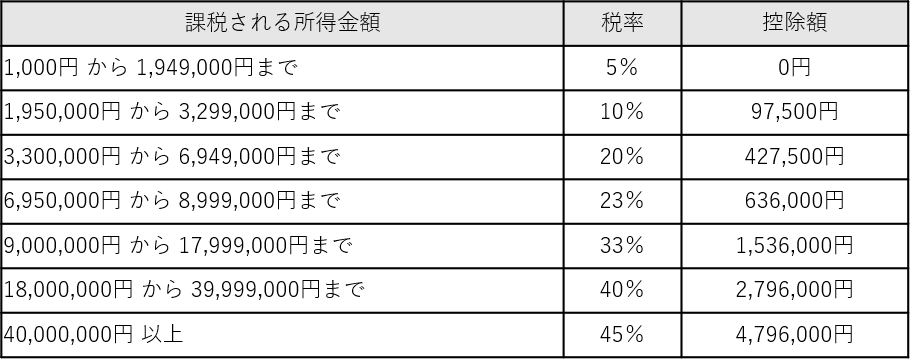 なお所得税の課税率は以下の表、住民税は一律10%です。